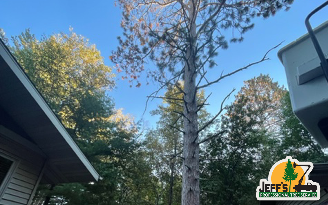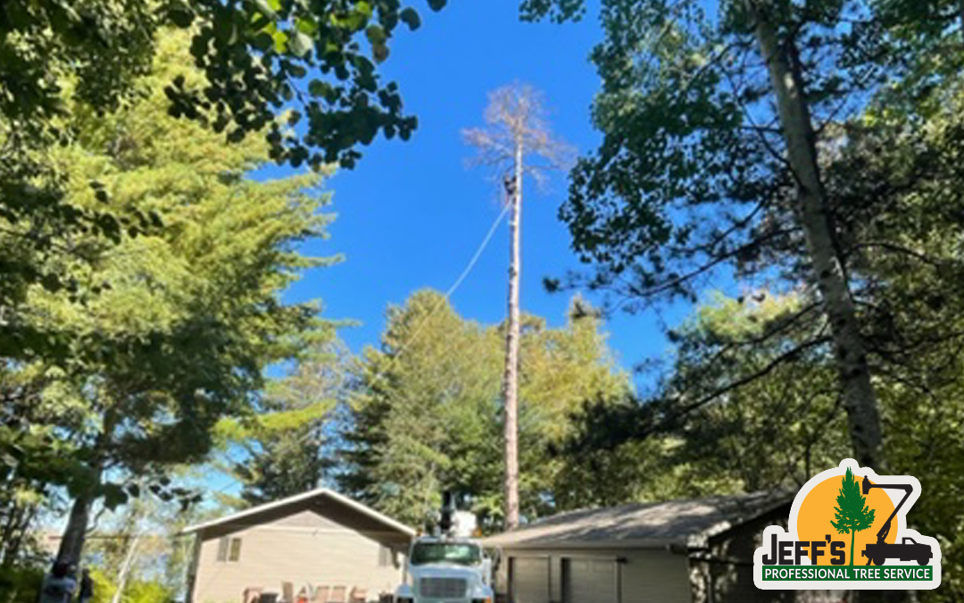 DEAD TREE REMOVAL NEXT TO GARAGE, SIDEWALK AND HOUSE